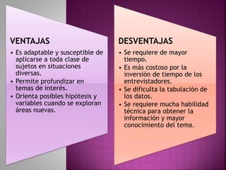 Posibilidad de divorcio de lo que se dice y se hace. (2) la eficacia de las entrevistas depende de una capacitación exhaustiva y. Las desventajas de las entrevistas a profundidad son: