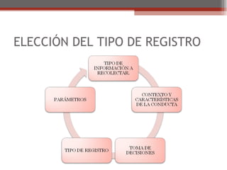 Elección del tipo de registro 3. El proceso de la observación y tipos registros en psicología conductual observación: Sólo por medio de la observación (o por una entrevista a los padres o profesores que han observado previamente) podremos recoger medidas de la conducta y establecer contingencias entre la respuesta y sus.